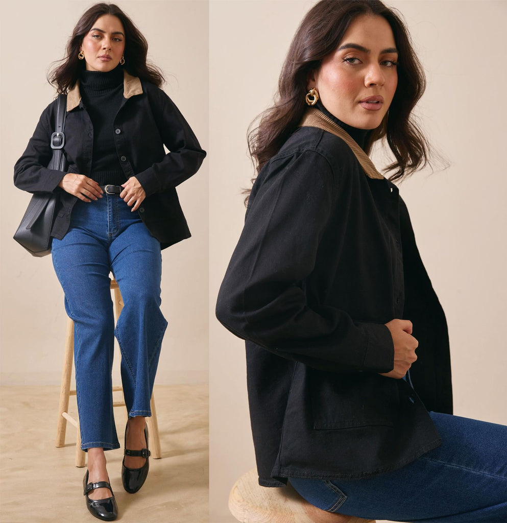 Chamarra Denim Cuello Gamuza